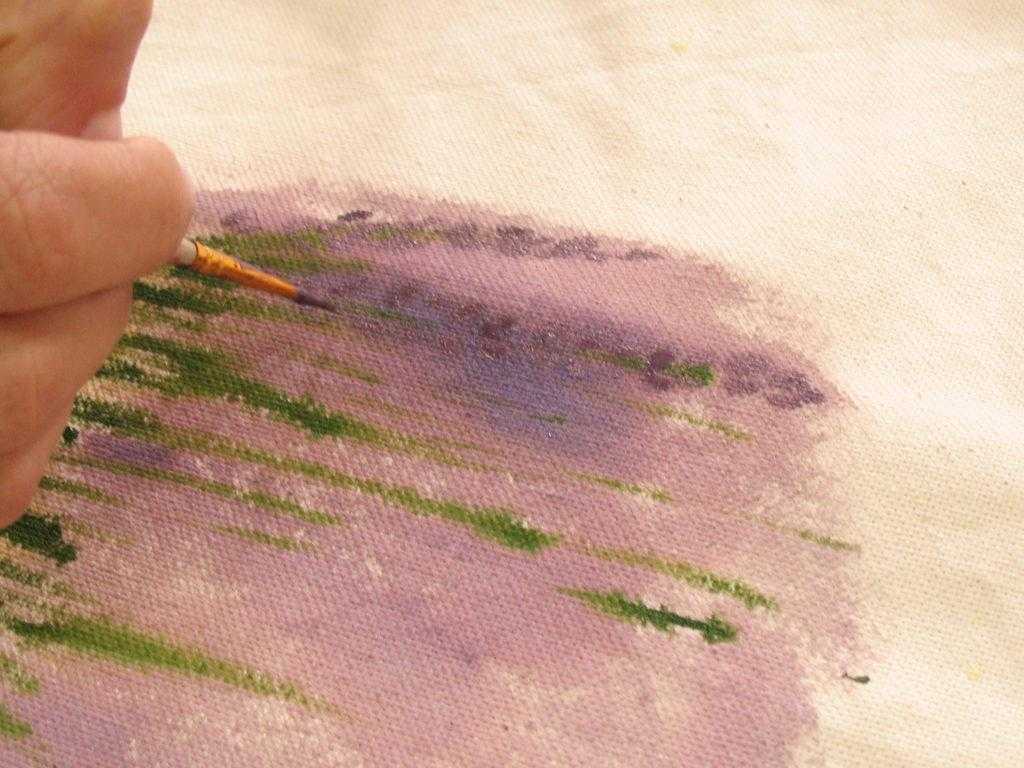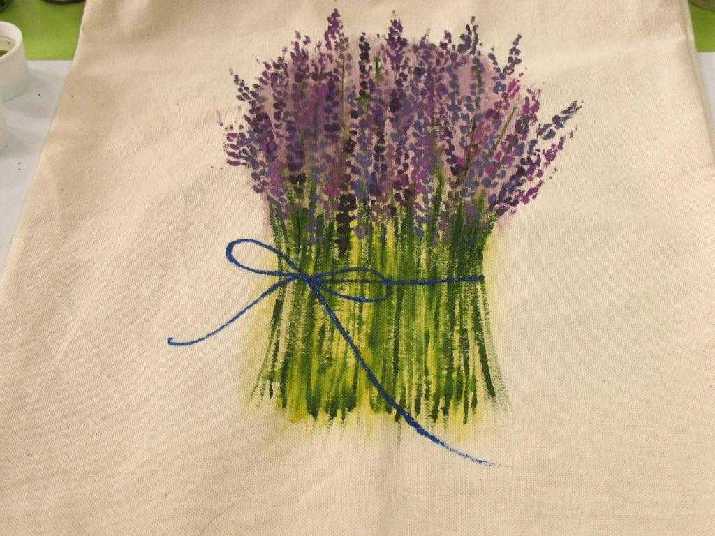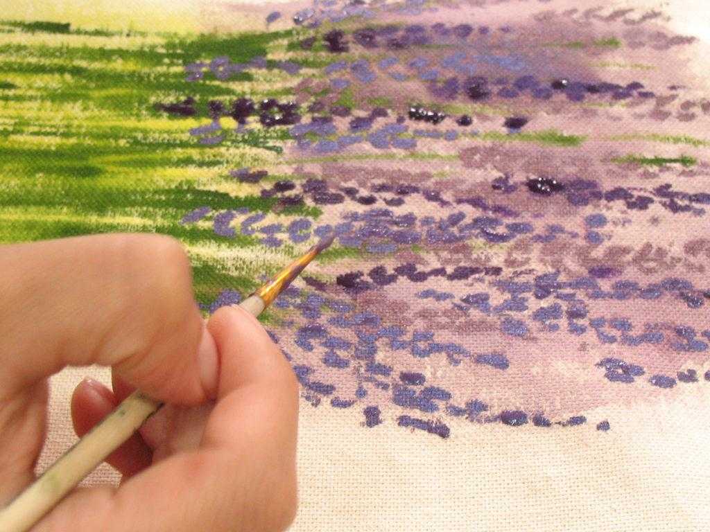 Красивым лавандовым пейзажем можно расписать не только холст бумаги. Милые фиолетовые цветы станут необычным украшением для деревянных панно, стеклянных баночек и даже холщовых сумок. Остается только запастись нужными инструментами и совсем небольшим количеством терпения и времени.