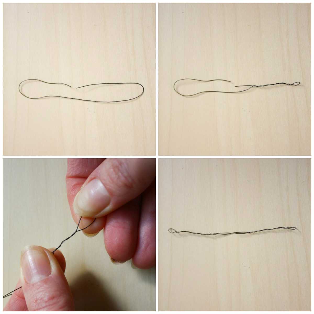 - Сложите концы проволоки в середину. Удерживая середину, заворачивайте проволоку в одну сторону, пока у вас не останется небольшая петелька с краю.
