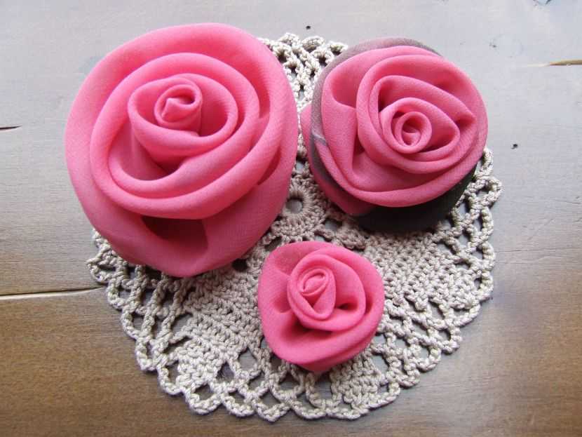 Опытные мастерицы советуют в одном цветочке использовать ткани разной фактуры: плотные и прозрачные, шифон и атлас. Красивыми получаются поделки с добавлением кружев. Из легкой материи получаются более изящные бутоны.