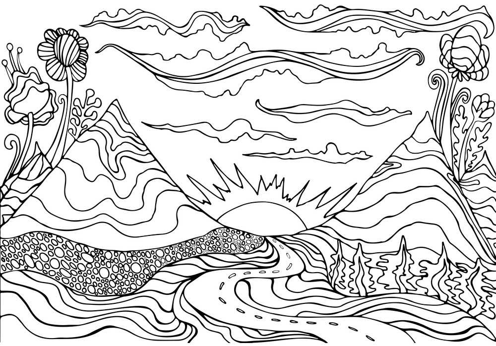 Зарисовка такого рисунка обладает расслабляющим эффектом, здесь не требуется концентрация и внимание — просто заполняйте картинку цветами и всё!