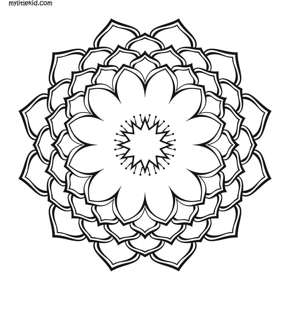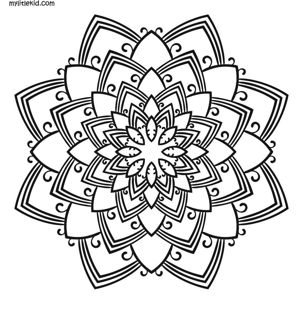 Это индивидуальный символ взятый из индийской мифологии. Считается, что при раскрашивании мандал, человек познаёт себя через рисунок, находит умиротворение и постигает новые истины. Даже если вы не сторонник индийских мифов, то раскраска такого рисунка поможет вам расслабиться и почувствовать себя лучше.