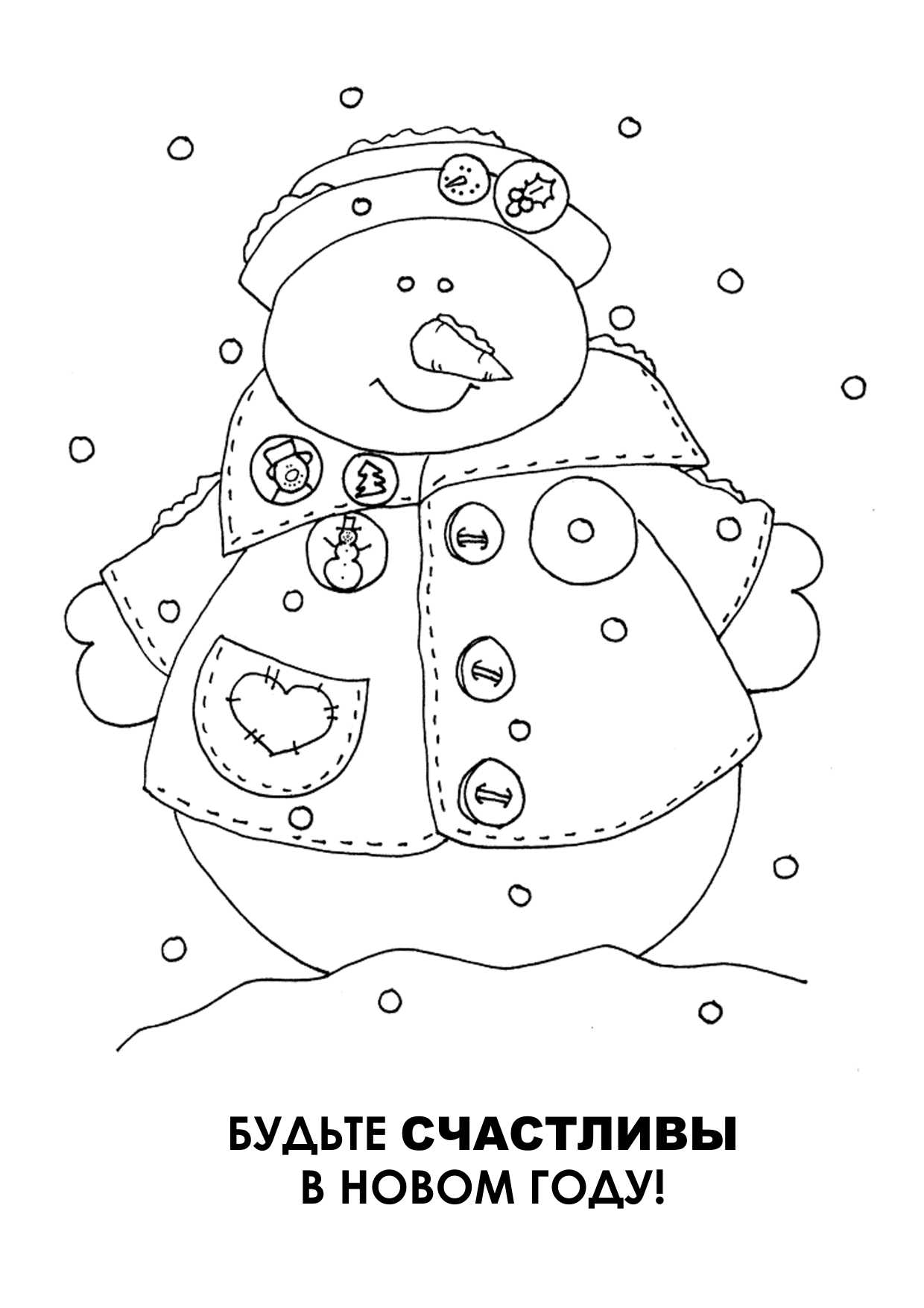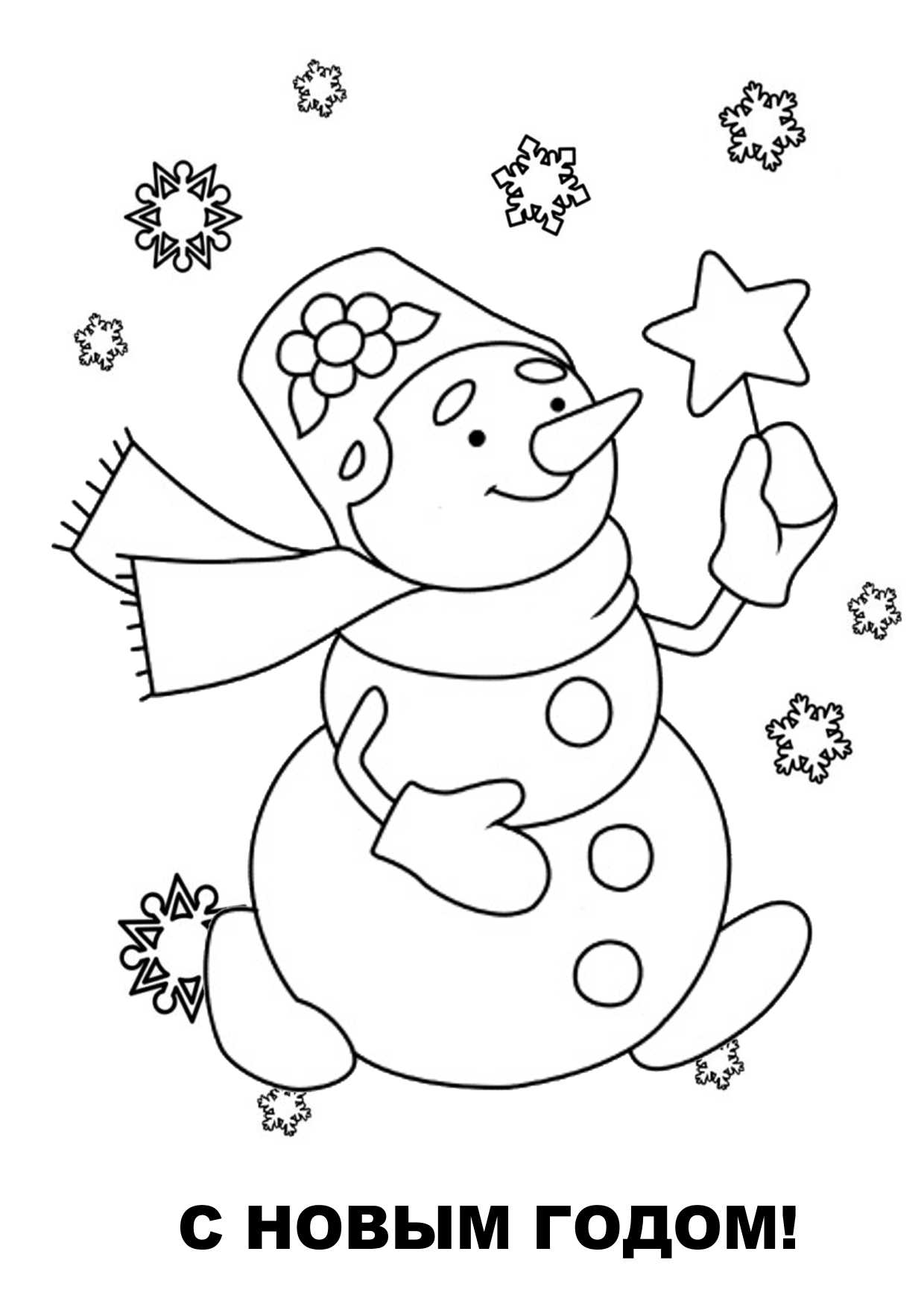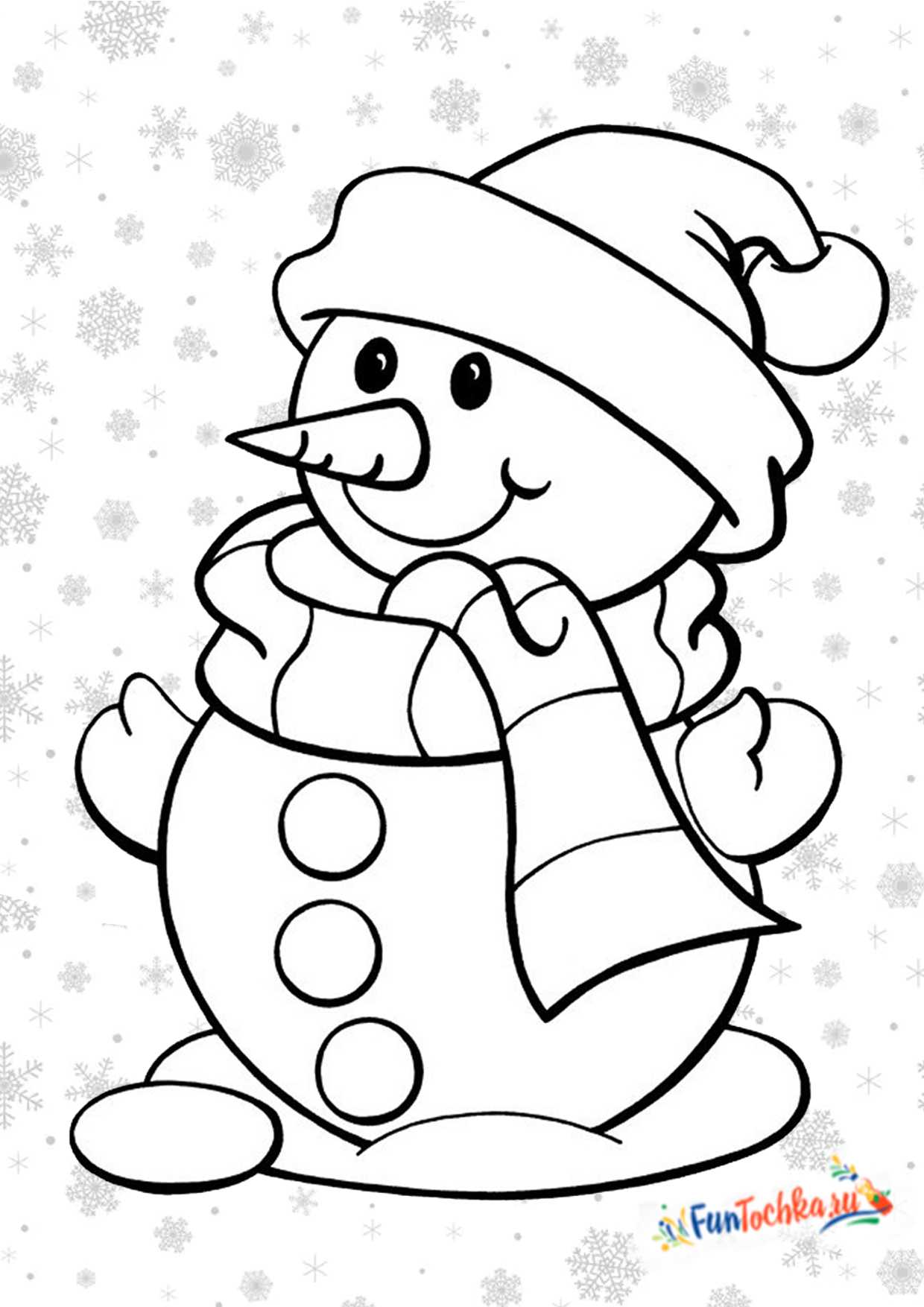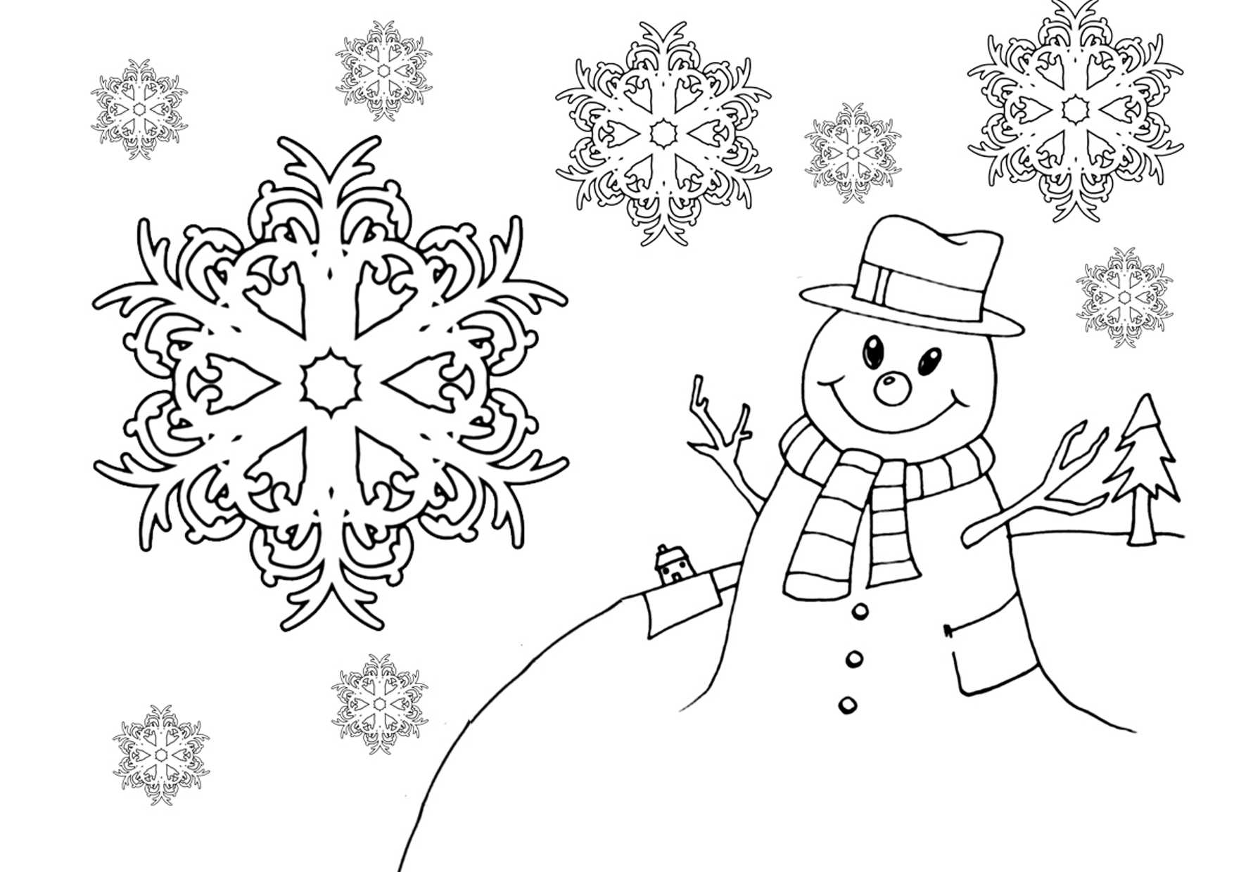 Добавьте на раскраску простые снежинки (три линии крест-накрест). Пусть они будут разного цвета и размера и оживляют фон шаблона.