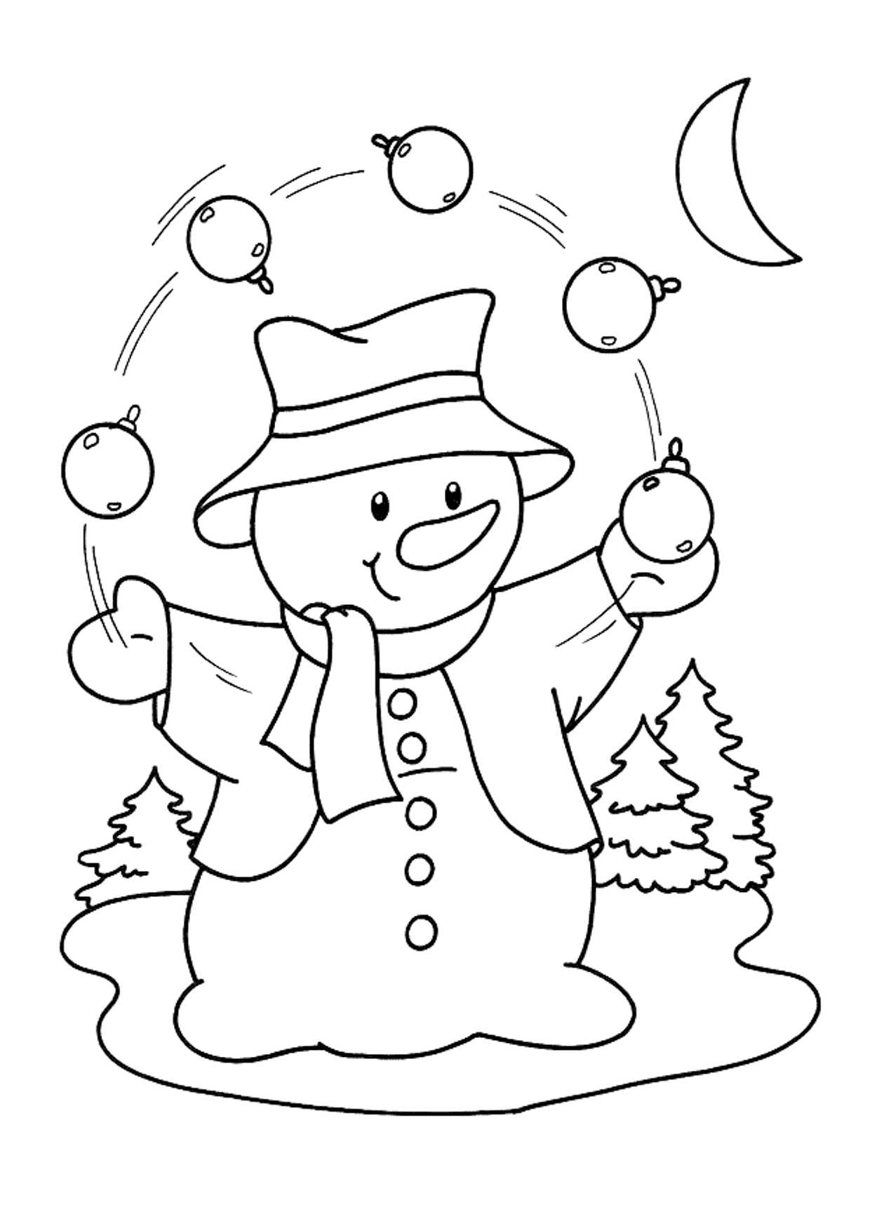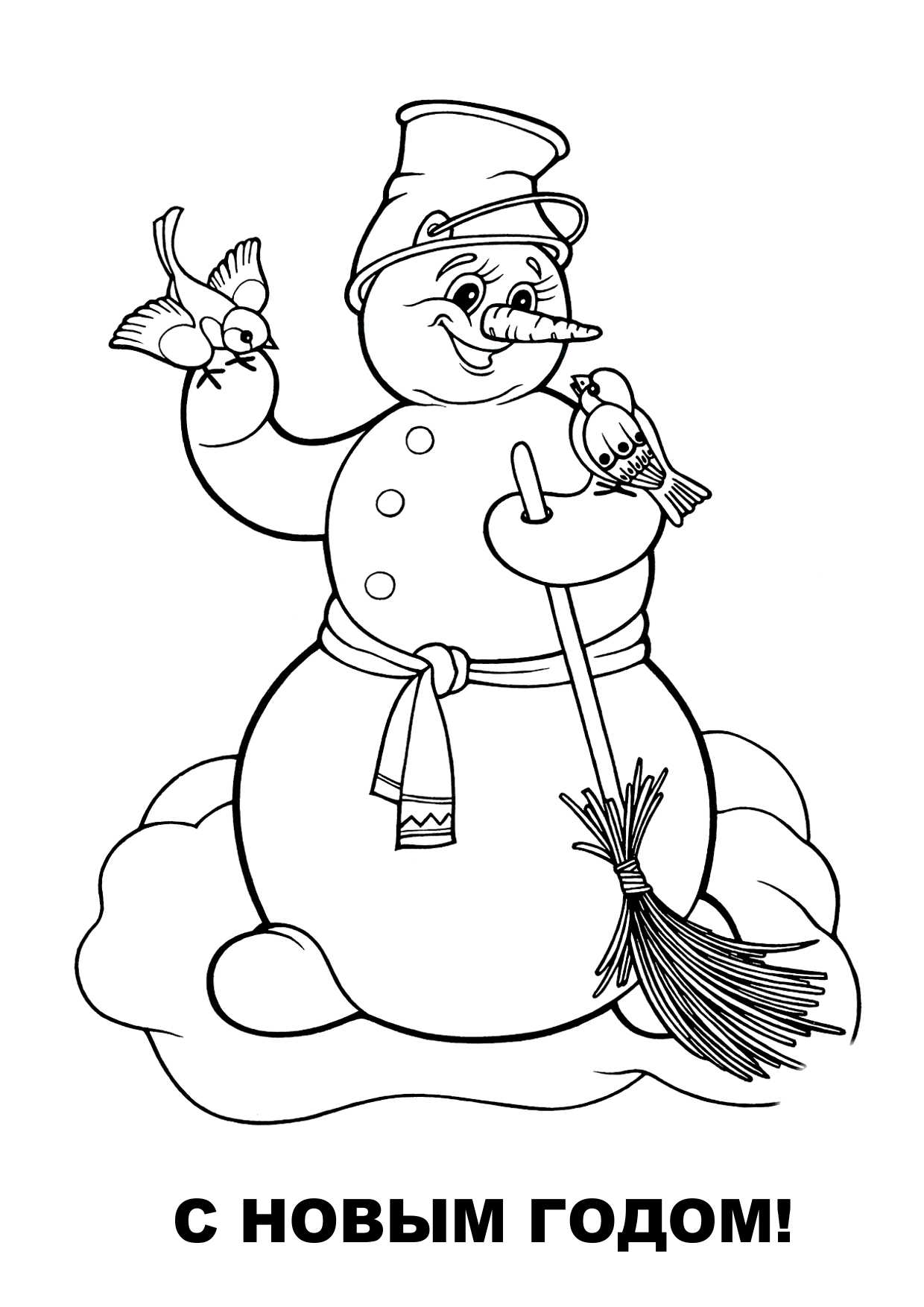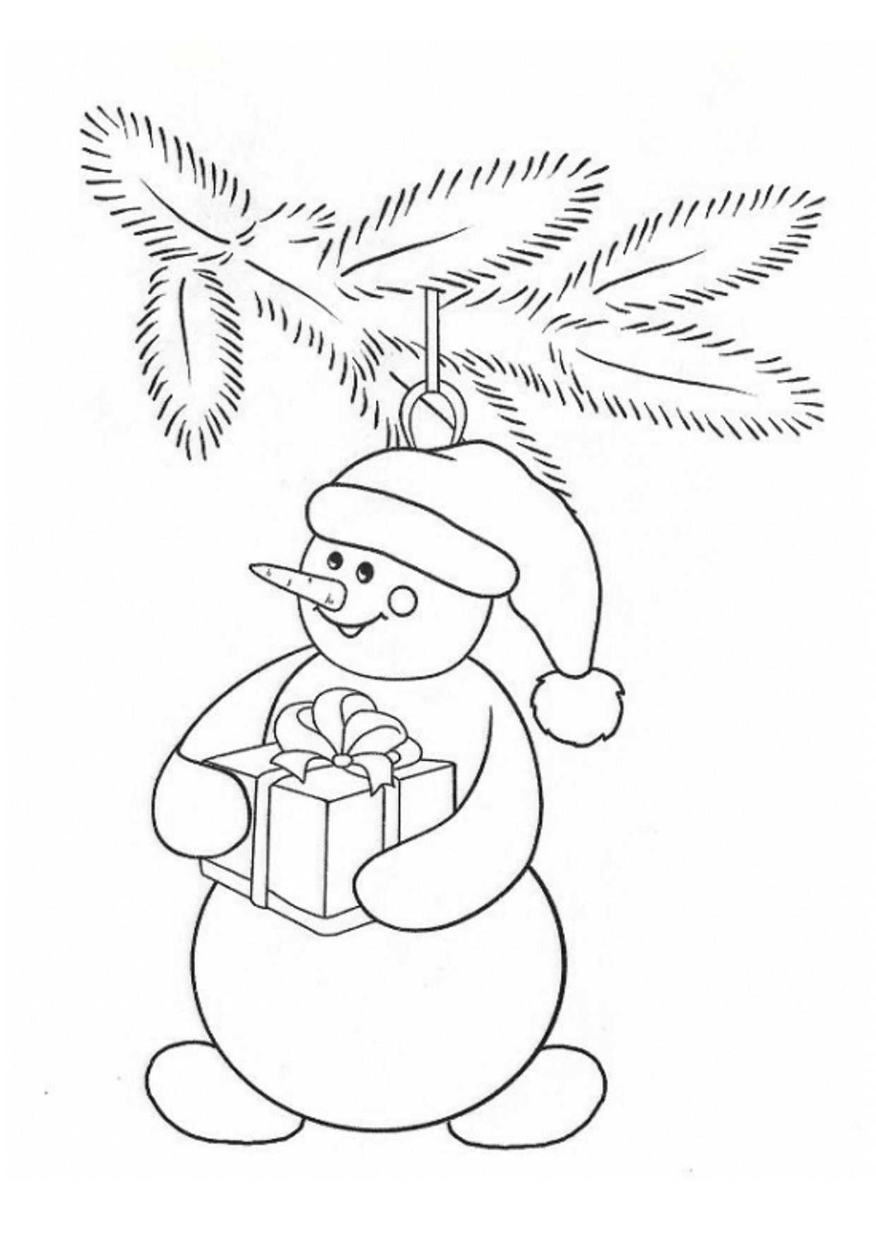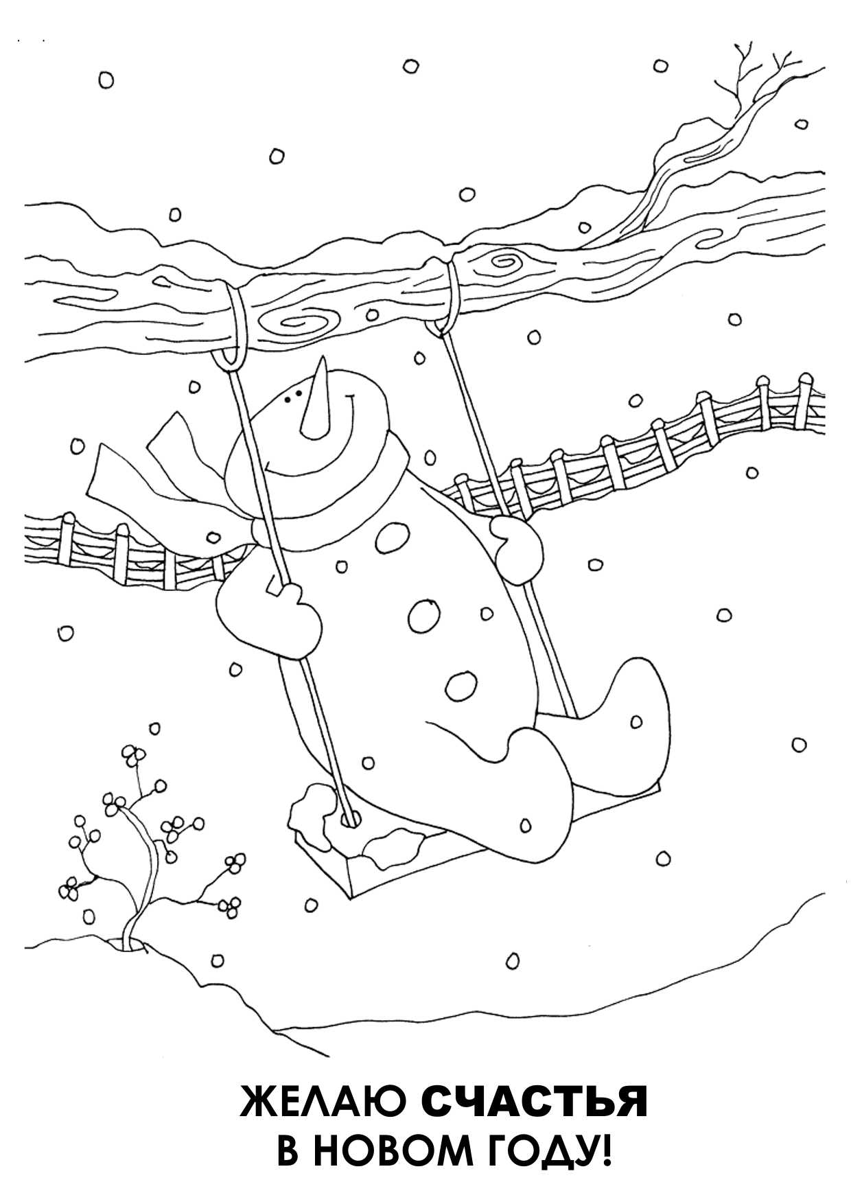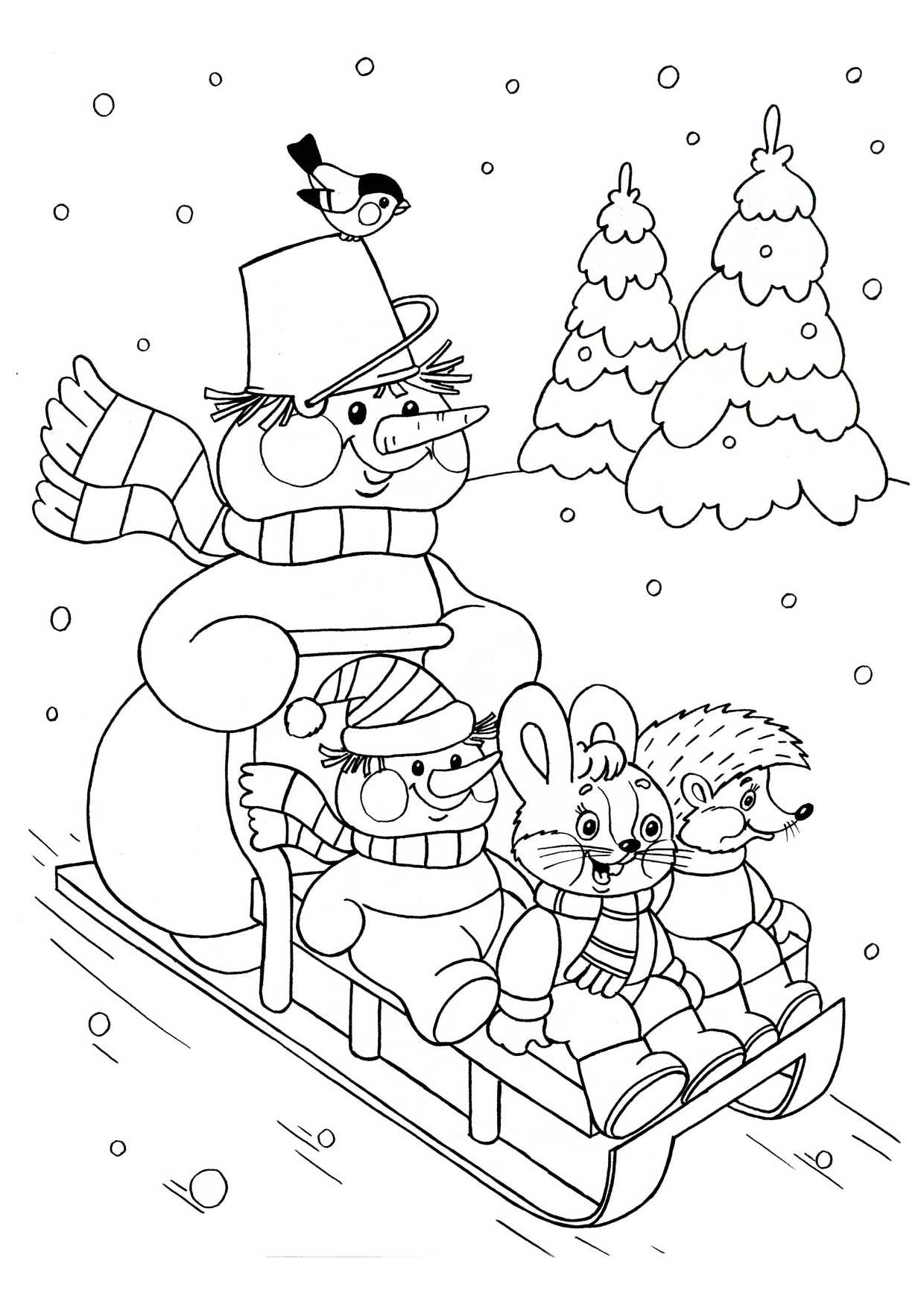 Добавьте на раскраску простые снежинки (три линии крест-накрест). Пусть они будут разного цвета и размера и оживляют фон шаблона.