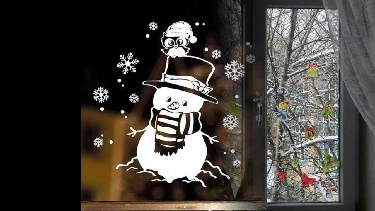 Снеговик на окно из бумаги большой — трафареты, идеи