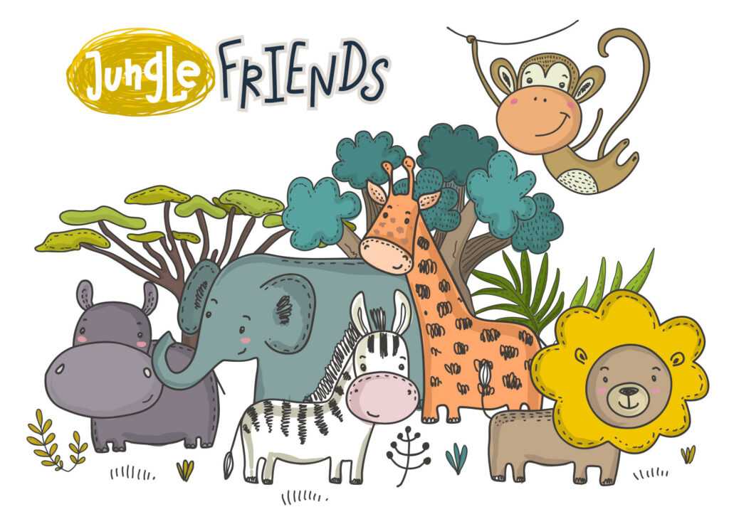 - Животные джунглей — Дети могут узнать об экзотических животных, таких как львы, тигры и обезьяны, раскрашивая страницы животных джунглей.