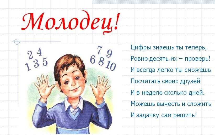Короткие стихи про цифры от 1 до 10 для 1 класса. Веселый счет