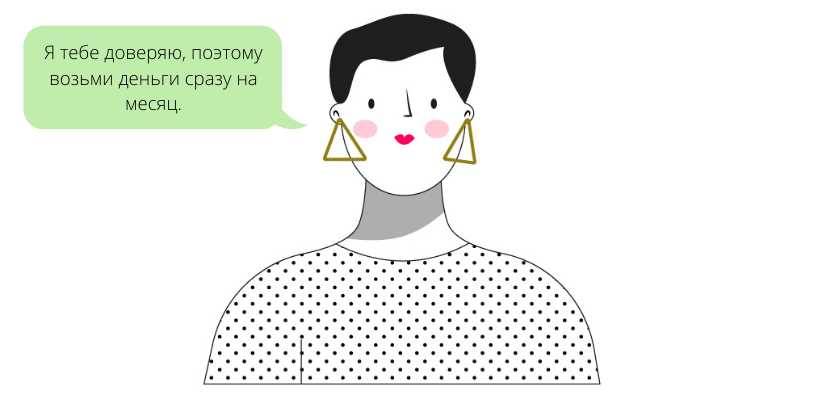 Чтобы научить детей финансовому планированию, договоритесь с ними, что дадите им деньги сразу на весь месяц. Объясните, что они должны правильно спланировать свои расходы и «растянуть» этот бюджет на весь срок. Если ребёнок обратился к вам за деньгами раньше срока, предупредите его, что в следующий раз не станете ему помогать (кроме самого нужного) до начала нового месяца.