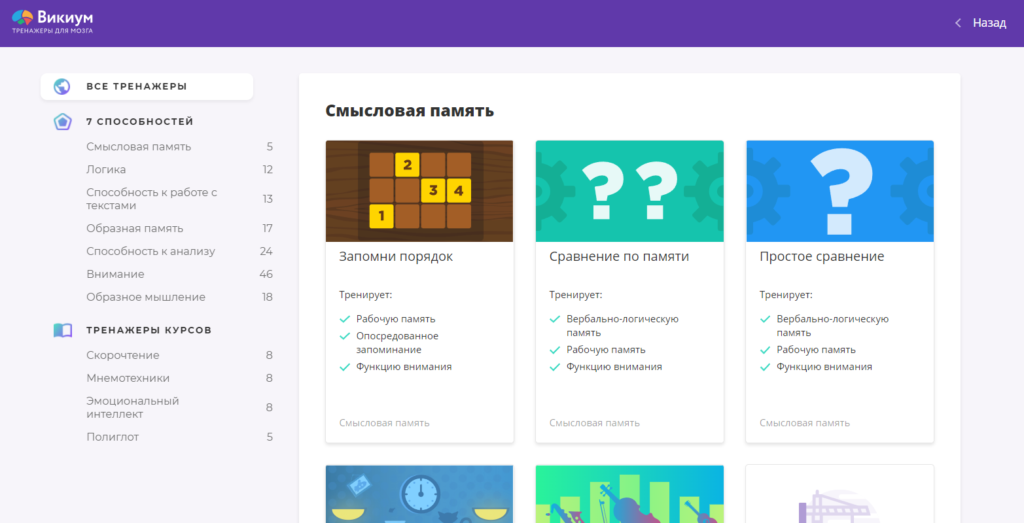 Это платформа, на которой собраны полезные онлайн-тренажеры — в том числе есть игры и упражнения, которые развивают логику и логическое мышление. Ежедневные тренировки помогут улучшить когнитивные способности мозга и повысят личную эффективность, продуктивность.