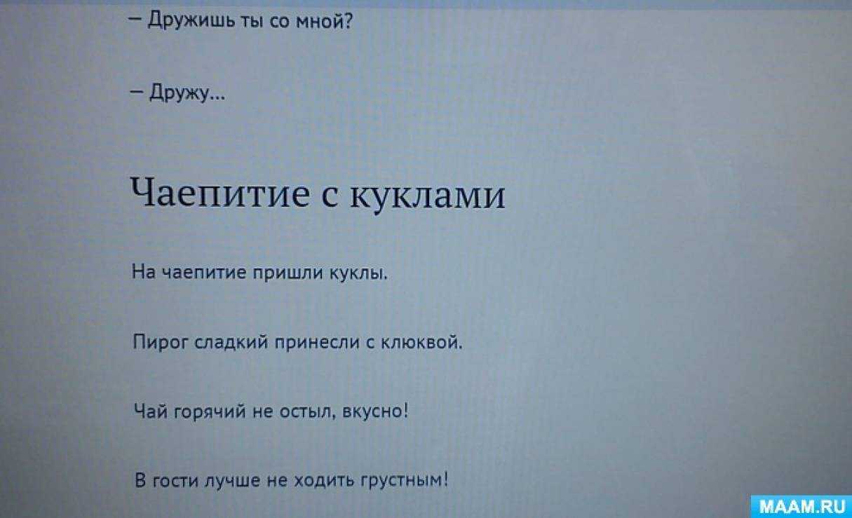 - после того как все непонятные фразы и слова будут объяснены, переходит к повторению этой строчки. Количество повторов зависит от индивидуальных особенностей ребенка.